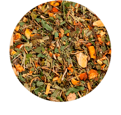 Menthe poivrée* (22%), verveine* (21%), pomme*, cynorhodon*, réglisse* (10%), anis* Contient de la réglisse - les personnes souffrant d'hypertension doivent éviter toute consommation excessive. *Produits issus de l'agriculture biologique